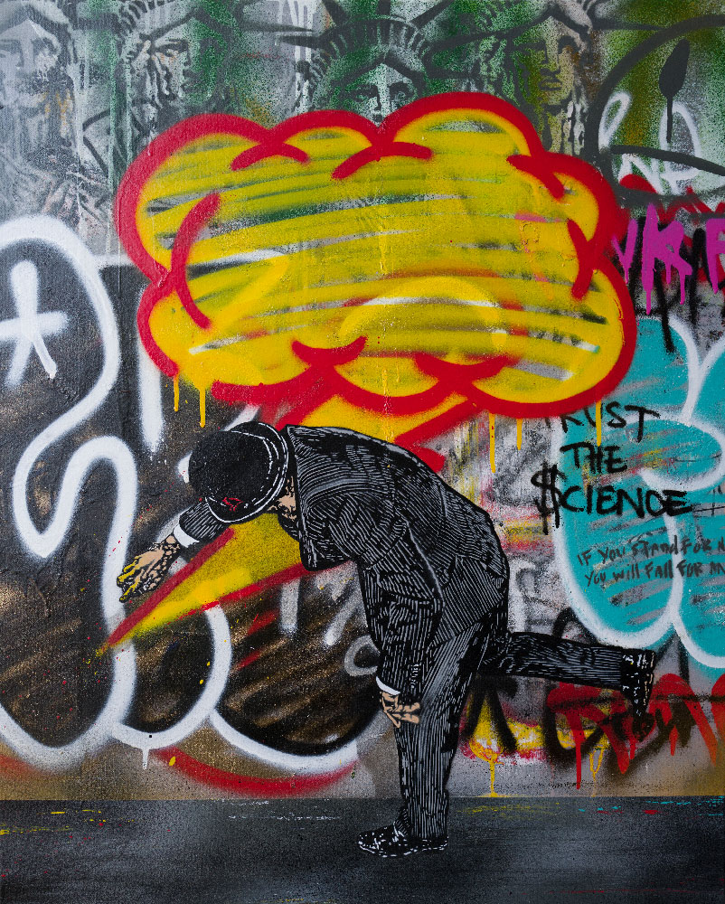 Aérosol et pochoir sur toile