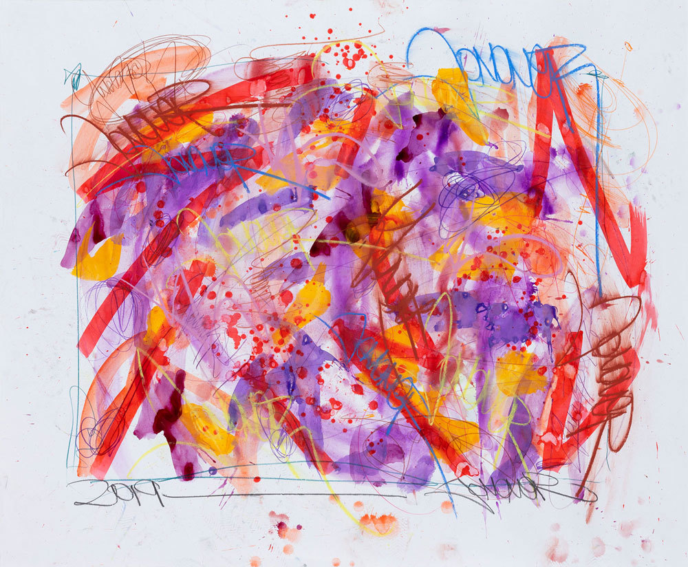 Encre, crayon gras et pastel sur toile