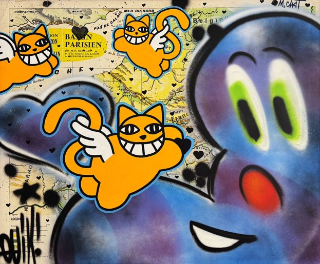 Aérosol, acrylique et aquarelle sur toile