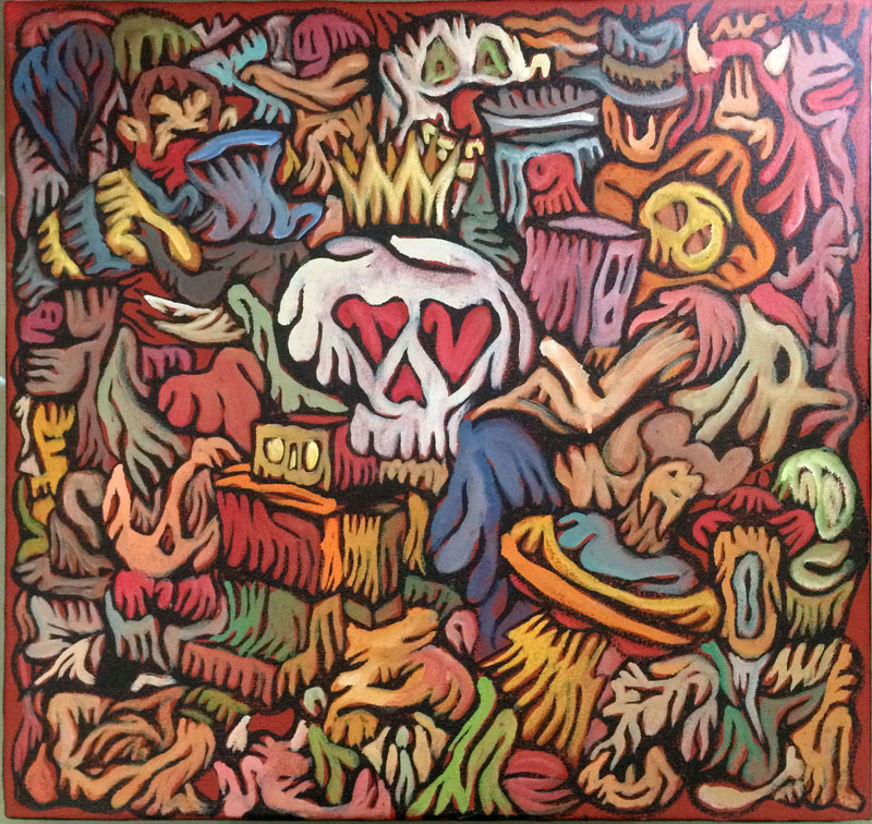 Acrylique sur assemblage de tissus et bâche