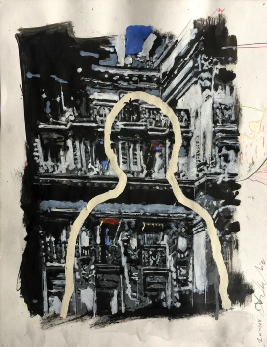Encre, crayon gras et pastel sur papier