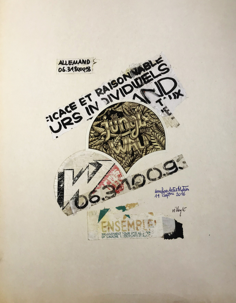 Collage et stylo à bille sur carton