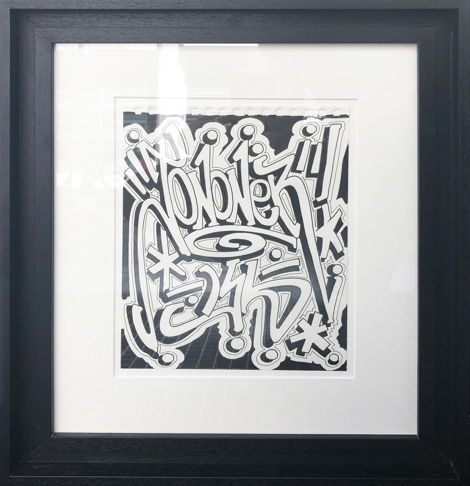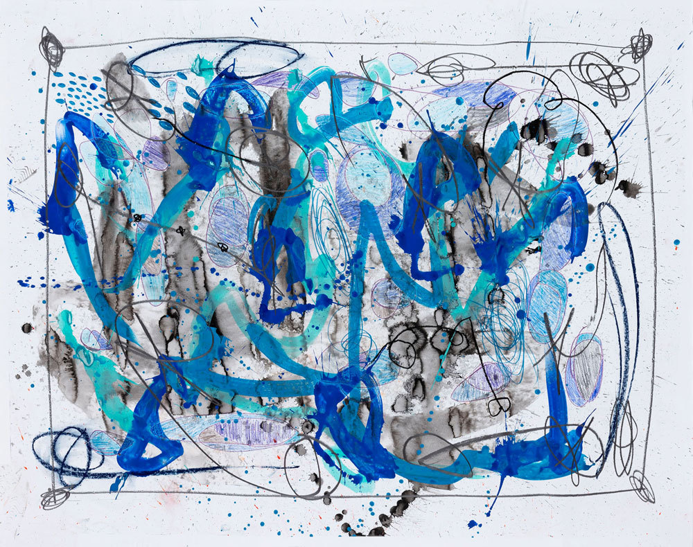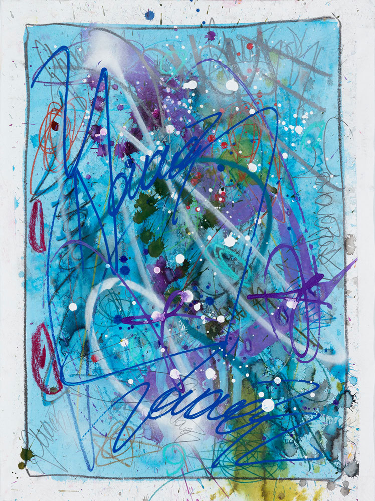 Encre, aérosol, crayon gras et pastel sur papier