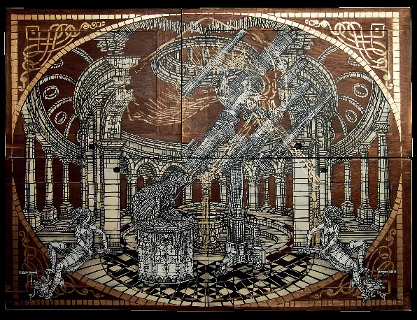 Pochoir sur assemblage de bois