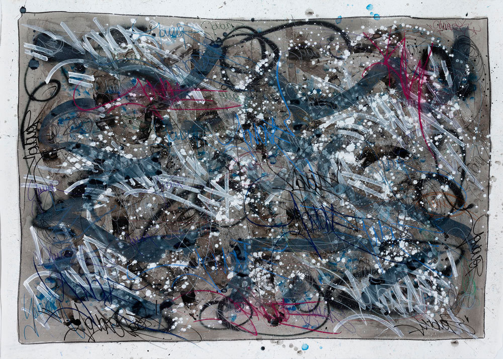 Encre, crayon gras et pastel sur papier marouflé sur toile