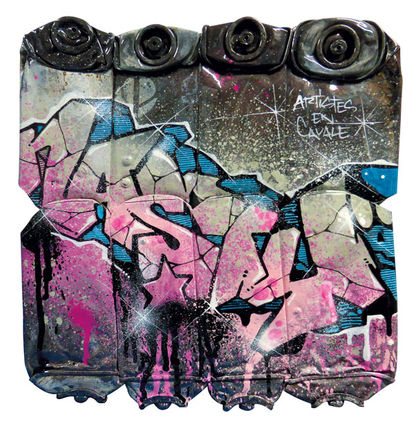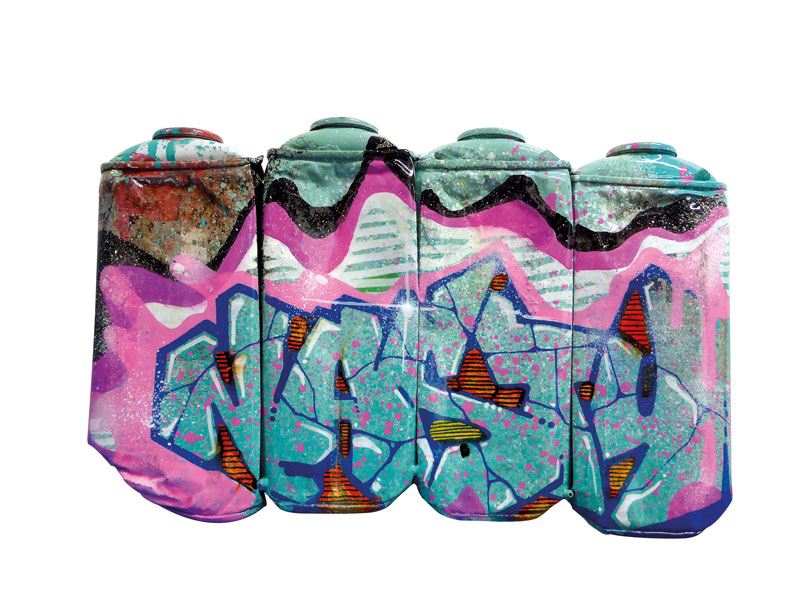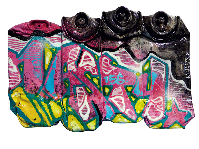 Aérosol et gouache sur bombes compressées