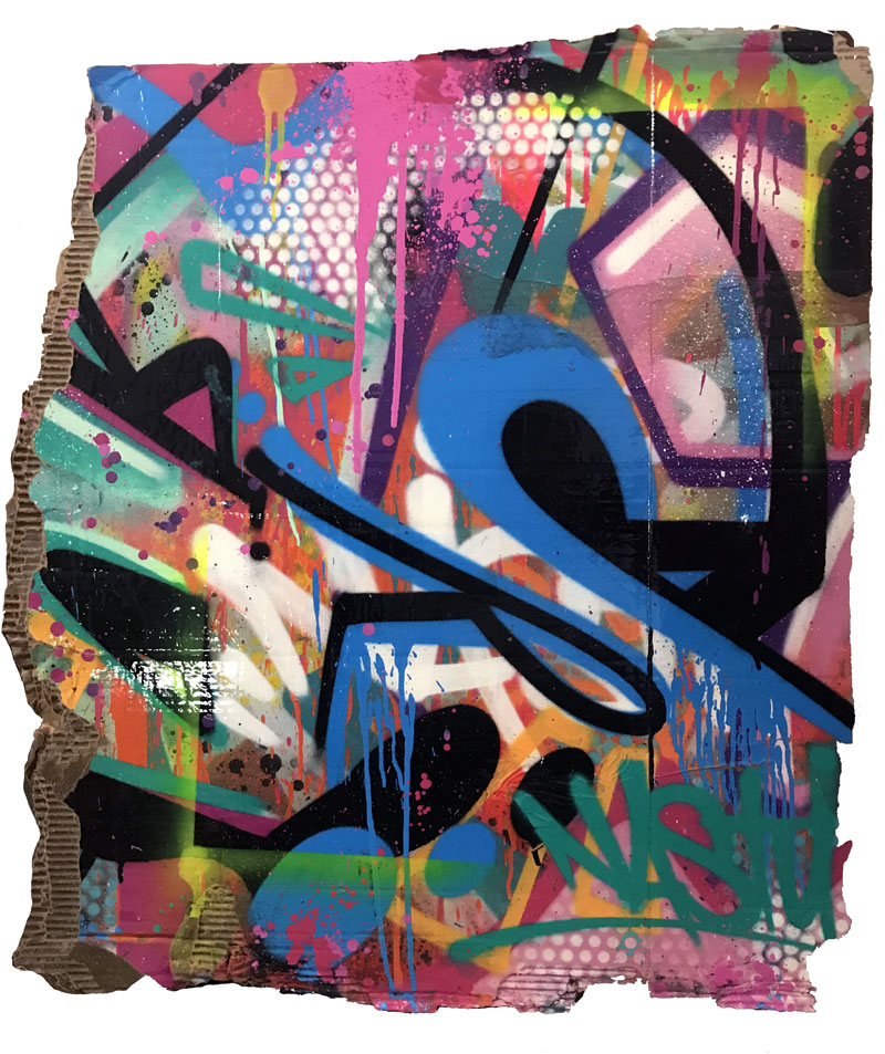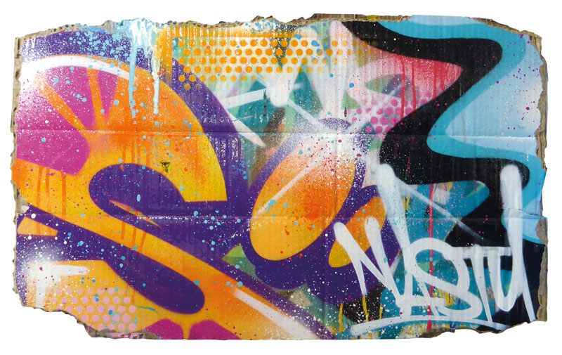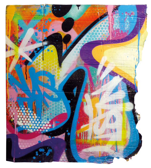 Peinture aérosol et gouache sur carton