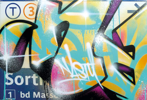 Peinture aérosol sur plaque de métro